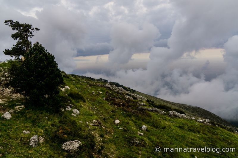 Там должны были быть обалденные виды и закат, но нам не повезло - опустилось облако, и мы почти ничего не увидели. Ехали в сплошном облаке.