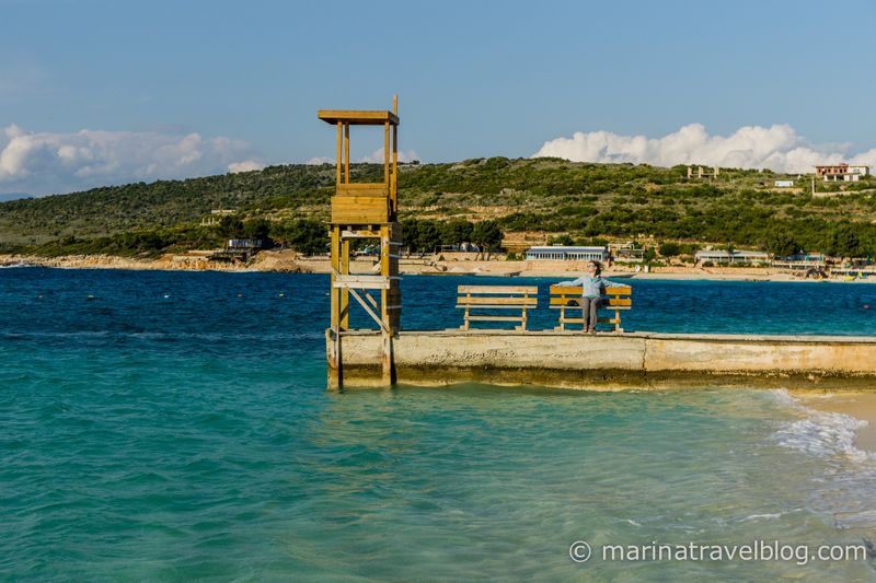 Пляж Gjiri I Hartes: закрытая бухта, даже в волны и ветер здесь было тихо. Сюда классно приезжать на закате. К пляжу ведет асфальтированная дорога, есть ресторан и переодевалки. На фото он справа.