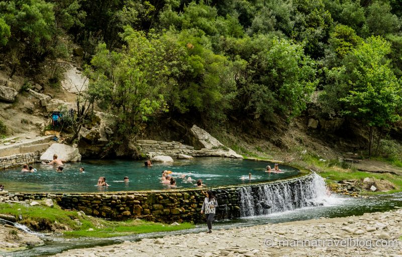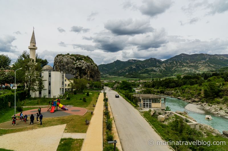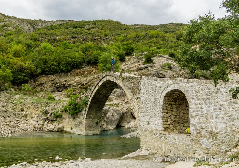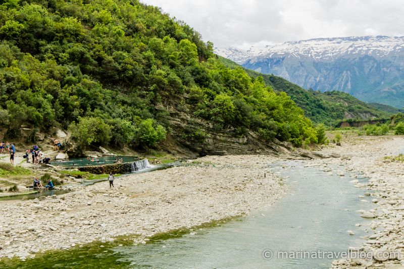 В 6 км от трассы находятся термальные источники Бендже (Bënjë thermal springs) и рядом с ними старинный мост. Мы почему-то думали, что это будет такое романтическое пустынное место и мы там отогреемся после холодов, но все оказалось наоборот: толпы местных и еле теплая вода :) Может быть летом вода там потеплее, а в мае на улице было 15 градусов, и вода совсем не согревала. Хорошо хоть вход бесплатный.