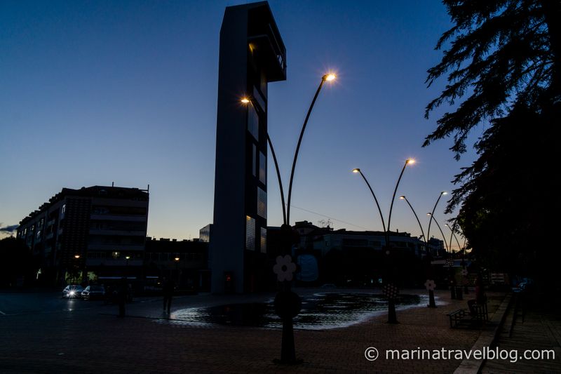 Вот эта башня со смотровой площадкой. Листайте карусель с фото - там виды на город и горы. Расписание: 9-20 часов ежедневно, цена билета 50 лек. Лифт не работал, нужно подняться пешком по 164 ступенькам.