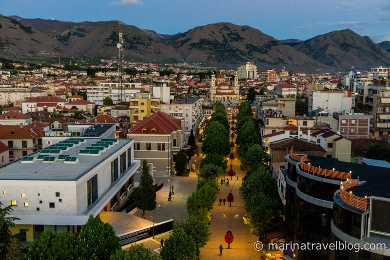 Корча (Korçë) - это город в горах на западе Албании, недалеко от границы с Грецией. Специально сюда ехать не стоит, но проездом погулять можно: интересный собор, улица с божьими коровками, башня с панорамными видами на всю долину и все окружающие горы, райончик со старыми домами и ресторанами.