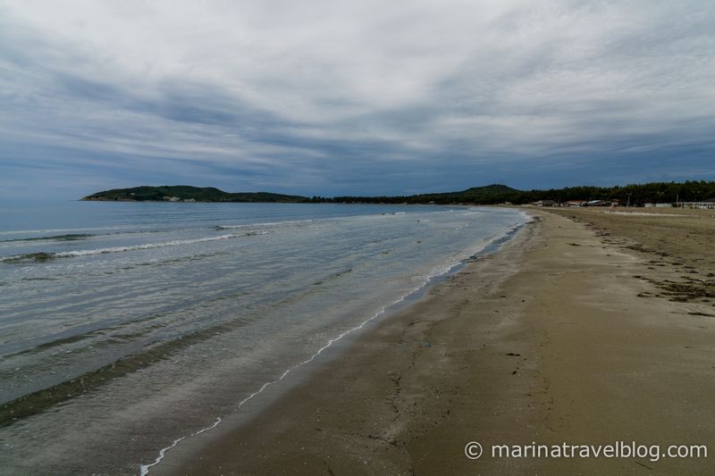 По дороге к монастырю заехали на пляж Нарта (Narta Beach). Там огромный песчаный пляж пологий вход в воду (подойдет для отдыха с детьми). Есть лежаки, души, рестораны, в сезон спасатели. Было очень пасмурно, поэтому такие мрачные фото.