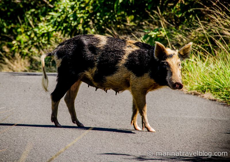 Hilina Pali Overlook запомнился только встреченной на дороге большой хрюшей с маленькими поросятами.