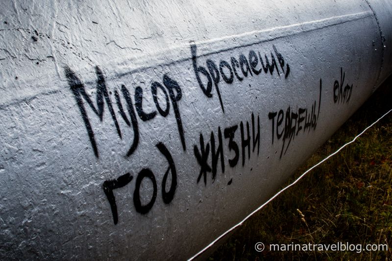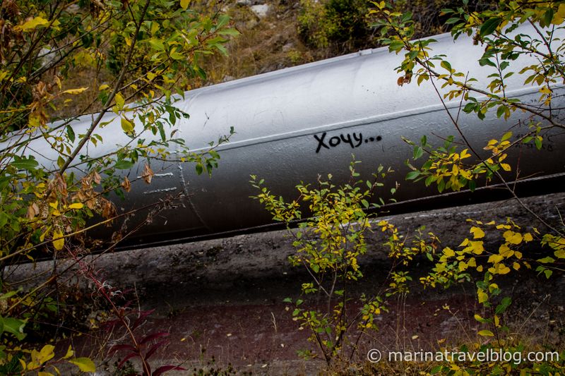 Часть маршрута проходит по трубе, которая спускается из озера к городу. Было прикольно по ней шагать :)