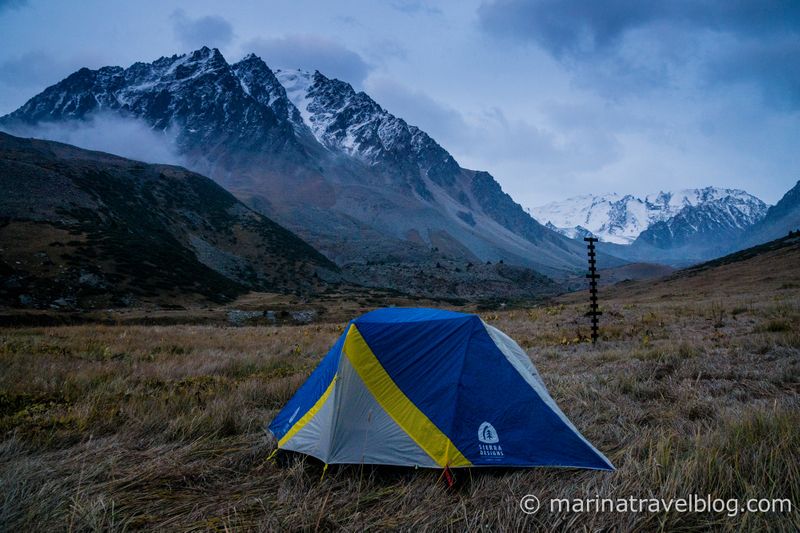 Палатку на Тянь-Шань лучше брать более закрытую, а не сетку. Мы ходили с Sierra Design Sweet Suite 2 и в ней мерзли, лучше бы взяли свою старую Terra Nova Superlite Voyager. Каремат жеательно потеплее - на обычной пенке будет холодно спать. У нас был надувной Exped HL Synmat Duo M.