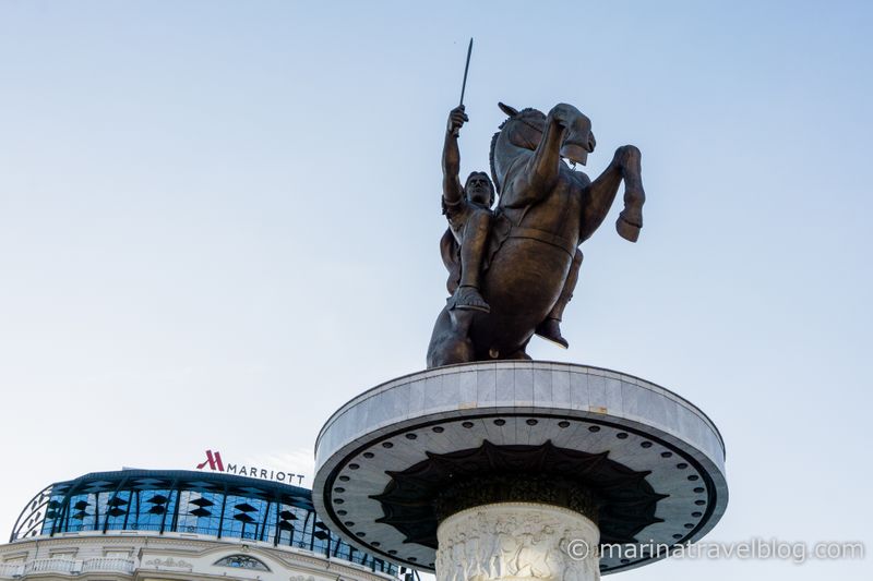 Съели мороженое и вернулись в новую часть центра Скопье - площадь Македонии. Нас встречает памятник Филиппу II Македонскому - отцу Александра Македонского.