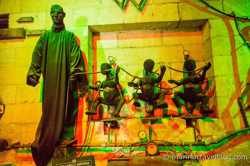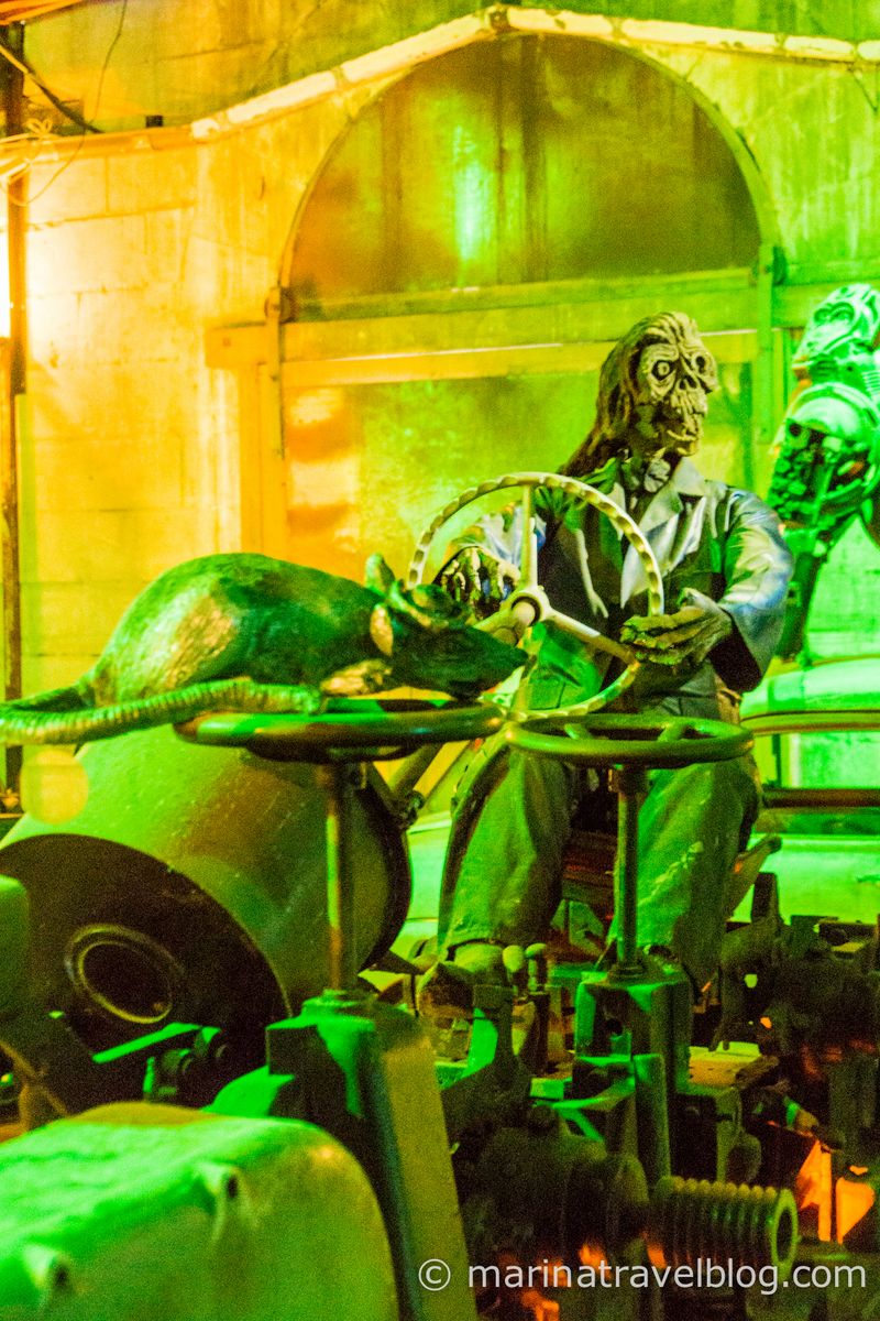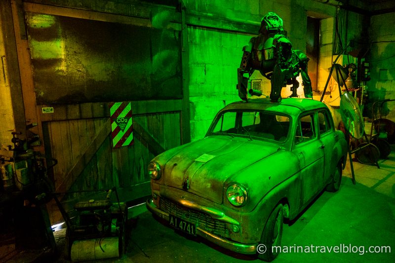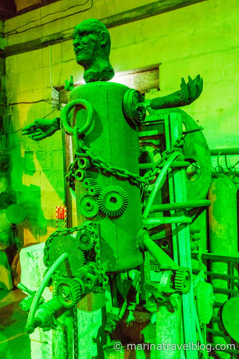 Внутри темновато для фото, но зато очень антуражная атмосфера, и играет соответствующая музыка :) Есть разные механизмы, роботы и прочие объекты.
